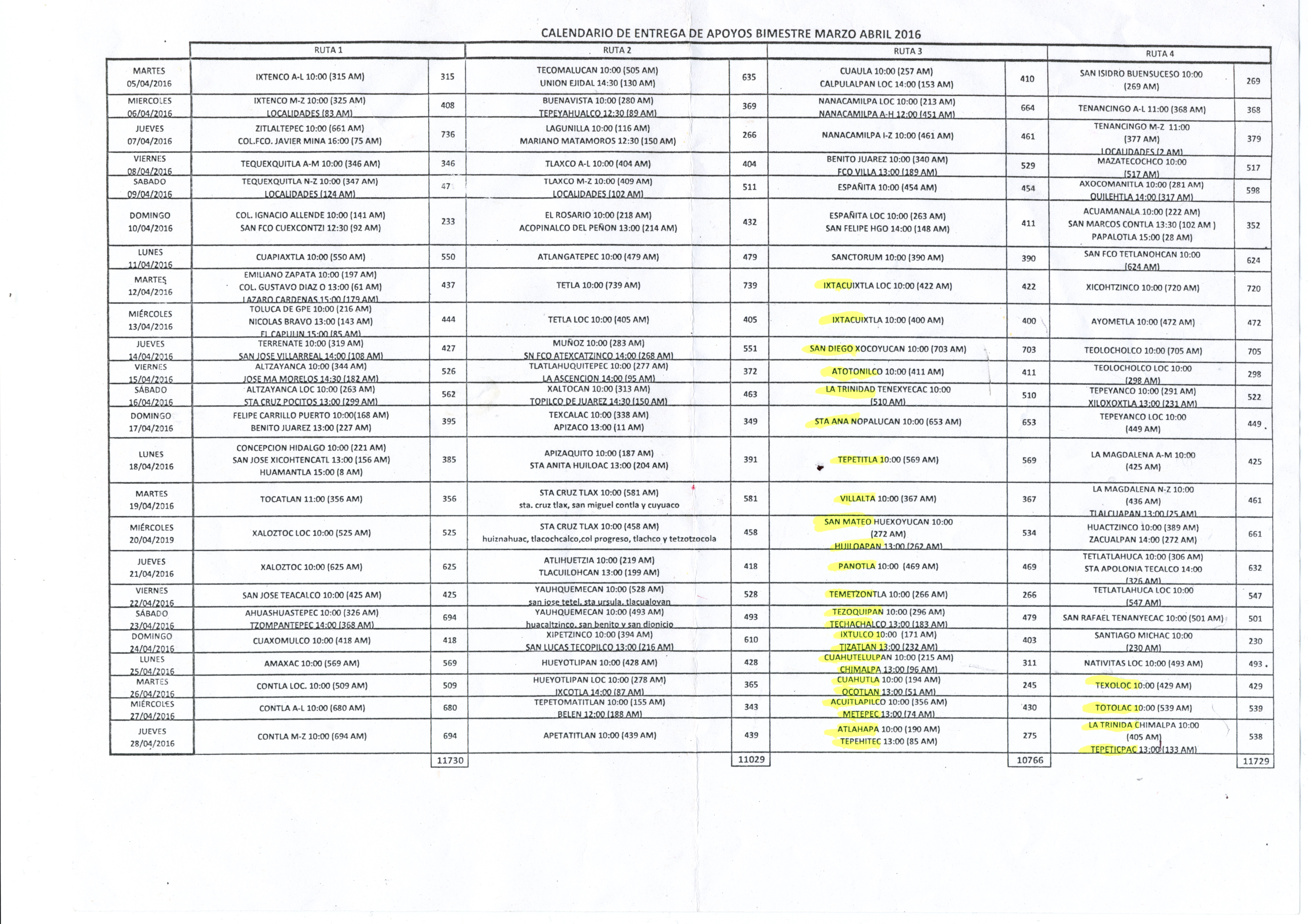 YA ESTÁ DISPONIBLE EL CALENDARIO DE ENTREGA DE APOYOS DE "65 AÑOS Y MÁS" DEL BIMESTRE MARZO-ABRIL PARA SU ATENCION. CONTIENE FECHA, LOCALIDAD O MUNICIPIO, HORA Y EL TOTAL DE ADULTOS MAYORES QUE ASISTIRAN AL EVENTO.